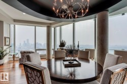 Here's your chance to HAVE ONE ENTIRE FLOOR TO YOURSELF and enjoy the ultimate in privacy and 360 DEGREES OF UNOBSTRUCTED VIEWS OF THE CITY. This breathtaking condo in the Pearl Tower spans one entire floor with $200,000 in additional upgrades from the developer's original specifications. The property includes 3 bedrooms + den with 2 of the rooms being full master bedrooms that come with spectacular ensuites & walk-in closets. The unit also includes 3 living rooms, dining area, 3 fireplaces and an absolutely stunning kitchen that is fully equipped with wolf and sub zero appliances and complimented with quartz countertops. The entire floor is dressed with upgraded hardwood flooring, comes with a full wetbar, wine room, and a Savant automated system that control: TV's, sound, lighting, thermostat and motorized blinds. Not to forget 4 underground parking stalls, 6 balconies, your own private lobby on your floor and THE MOST INCREDIBLE 360 degree views of the City.
