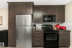 TOP FLOOR condo with TWO Parkings Stalls (1 Underground) & Insuite Laundry. Located in LAKE SUMMERSIDE with year-round access to the Lake amenities such as fishing; Beach; Playground; Tennis; etc. Can it get better than this? Look no further, with sunset views, this 948 SqFt 2 Bedroom & 2 Bathroom unit has an open-concept layout & laminate flooring. Perfect for a 1st time home buyer, young couple or investor! The Kitchen has plenty of cabinets; counterspace & an eat-up bar (New fridge 2024). Relax in the spacious Living room where patio doors lead onto the covered balcony. The Primary Bedroom boasts an Ensuite (W/I Shower; 2 Sinks) & a Walk-through closet. The 2nd bedroom is located next to the 4 piece Bathroom. A Laundry room has space for hiding those items out of sight. No neighbours above or on one side! Amenities include an exercise rm; games rm w. a pool table & a guest suite for out of town family & friends! Don't let this opportunity pass you by. Be part of this amazing community of Summerside