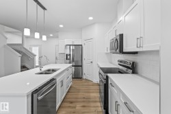 Welcome to this beautifully designed home featuring an open-concept main floor with a bright living room, spacious dining area, stylish kitchen with a pantry, and direct access to the back deck, along with a convenient 2-piece bathroom. The upper level offers three generous bedrooms and three bathrooms, including a private ensuite for the primary bedroom, plus upper-level laundry for added convenience. Completing the home is a double attached garage, making this the perfect blend of comfort, functionality, and modern living. Backing onto greenspace and walking trail. Close to many amenities including schools and shopping centers!