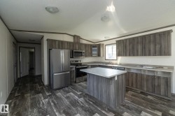 Brand-new 3-bed, 2-bath home in Willow Park Estates. Situated on a centrally located lot surrounded by mature trees for privacy, this property is just minutes from shopping, schools, parks, & all amenities. The price includes 4 stainless-steel appliances, GST, & a complete turnkey setup. Built w/2×6 exterior walls & 30-year architectural shingles, this energy-efficient home features an open-concept living area anchored by an extended kitchen island with a breakfast bar. Other highlights include vinyl-inspired flooring throughout, a 6×6 front entry landing, an 8×10 rear deck, brick-accented exterior, & is pre-wired for air conditioning. Windows come dressed w/a full blind package. Monthly lot fees are $649; property taxes are yet to be determined. Enjoy peace of mind w/a 1-year builder warranty & 10-year structural warranty. Don’t miss this chance to move into a brand-new home. So what are you waiting for? Take a peek, fall in love & start creating memories!