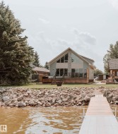 This Beautiful Western Manufacturing Show Home right along Pigeon Lake was moved into place in 2023. Composite decks on both sides allow all day sun or shade with a hot tub just steps from the water. Head inside to the main floor that hosts the Primary bedroom, Modern Kitchen, Dining Room, Living Room, and 3 piece Bathroom. The upper level is beautifully finished with a wood cladded ceiling that holds Two more Bedrooms, a 4 piece Bathroom, and a Family Room with large windows that overlook the Lake. This property is turn key and comes completely furnished. Great for guests is the fully finished bunk house that has a Bedroom, 3 piece Bathroom, Laundry, Hot Water on Demand, and kept warm year round. Just minutes from the Village of Pigeon Lake that has all your amenities. Close to Schools and Enjoyable year round with lots of winter activities, and just minutes to many different Golf Courses. Being used as a Popular AirBnB. Neighboring property is also available allowing you to set up your own Lake Resort!