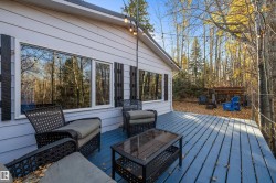 This move-in ready 3-bedroom, 2-bathroom home offers the perfect blend of comfort, privacy, and modern upgrades — all within walking distance to the lake and the amenities of The Village. Step inside to discover a bright, open layout featuring new flooring, including plush carpet and durable vinyl. The upgraded kitchen and bathrooms shine with modern finishes and convenience, complemented by three new appliances (2025). Stay cozy and energy-efficient all year round with a new high-efficiency wood stove (2025) and on-demand hot water, along with updated plumbing for peace of mind. Enjoy outdoor living in the 10 x 14 gazebo, ideal for relaxing or entertaining, all while taking in the private ravine setting—a nature lover's dream. Dock & hoist negotiable. Additional highlights include a new metal roof (2025) for long-term durability and curb appeal. Don't miss this opportunity to own a stylish, upgraded home in a peaceful location just steps the lake and from everything The Village has to offer!