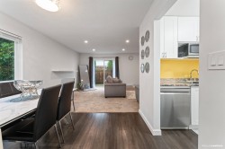 Beautifully updated 2-storey, 2-bed, 2-bath south-facing corner unit with new windows, roof, and exterior upgrades. Fresh paint, new flooring, and brand-new appliances throughout. The kitchen features updated countertops, and both bathrooms are fully renovated. Enjoy an open-concept living/dining area with a modern gas fireplace and sliding doors to a private patio with green space. Upstairs offers two spacious bedrooms and in-unit laundry. Carport at your doorstep, plus a central location near all amenities and District 1881.Move-in ready—don’t miss out!