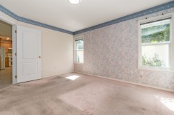 Perfect home in the perfect location! Central Sardis Rancher with Loft home with 2 Primary Bedrooms with ensuite baths. This is a great layout for retirees that want to entertain and have company stay with them. Lots of natural light. Fresh interior paint. Amazing loft space with 17' x 20' Family room. You will love the quiet and private yard with covered patio backing onto a bubbling brook. Double Garage and crawl space for more storage. New Furnace, AC and HWT in 2022. Heated Tile floors in both baths. Close to shopping and restaurants as well as doctors clinics. Quick Freeway access. Bring your ideas and make this home yours! 55+ Age Restricted. Well run Strata. 1 pet allowed (dog or cat). Dogs allowed up to 26 lbs/12kg