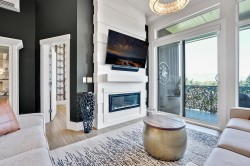 Welcome to refined living in this professionally designed 2-bed, 2-bath + den sub-penthouse, perfect for your next chapter. Thoughtful touches include crystal chandeliers, 11-ft ceilings, a warm, elegant colour palette, and an upgraded kitchen with custom pantry. Enjoy a walk-in closet that feels like a dressing room, a serene primary bedroom, power blinds on all windows, heat pump/AC, & stunning mountain views. With a secure EV charger dedicated to your parking spot, a vibrant community room and rooftop terrace with gas fire pits & BBQ, this move-in-ready home offers connection, comfort and ease in the heart of Sardis. Bike room, scooter charging, pet area, guest suite... Did we mention the stunning views and that we are on the quiet side of the building? Call your REALTOR today.