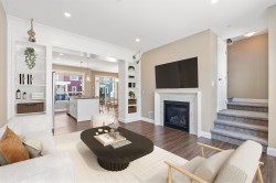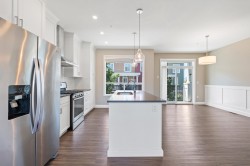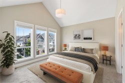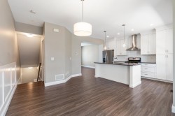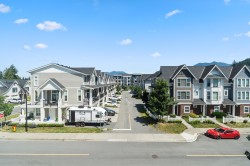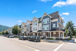 Discover this stunning 4-bed, 3-bath non-strata Row Home in desirable Webster Crossing—offering 1,500+ sq ft of bright, modern living with no strata fees! Steps to Vedder River, Rotary Trail, parks, and schools. Features quartz counters, gas range, S/S appliances, A/C, NG fireplace, large windows with mountain views, and an open floorplan. The vaulted-ceiling primary suite offers a walk-in closet and spa-like ensuite with heated floors. Enjoy a fenced yard, covered patio with BBQ outlet, EV-ready double garage, full driveway, and dog wash station. Close to Garrison Crossing, Cultus Lake, and Hwy 1—this is the lifestyle you’ve been waiting for! No strata, no bylaws, self-managed.