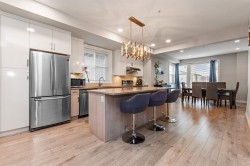 This END Unit townhome boasts over 1735sq ft spread out over 3 levels. Features a DOUBLE garage with visitor spot right next to it, park up to 4 vehicles. A fenced backyard is a great space for your furry friends. The lower level includes a large Rec/Media room or can be used as another bedroom with two pc washroom. The Main offers an open floor plan with large kitchen to Dining room and a warm and welcoming Living room with Electric fireplace for cold days and a slider opening up to the large Sundeck that's perfect for BBQ weather. Upstairs you find the Primary with large walk in closet and spa like Ensuite Bathroom, the main bathroom and Laundry with two good sized rooms. High ceilings throughout and located close to Hwy 1, shopping, and schools.