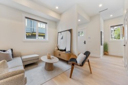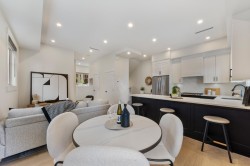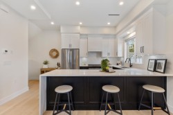 ***NOVEMBER DEVELOPER INCENTIVE AVAILABLE *** Brand-New Move In Ready 3 Bed, 2.5 Bath Townhome in "Le Bleu' - A Boutique Development in Historic Maillardville. Stunning end-unit, thoughtfully designed and built with quality craftsmanship, this home offers a blend of comfort and modern luxury. Enjoy peace of mind with a severe two-car attached EV ready garage. central A/C, high-efficiency gas furnace, and a Heat Recovery Ventilation system. Endless om-demand hot water ensure comfort for all. Bright and airy with 10' ceilings and Southwest exposure, this home is flooded with natural light. Sunny Southern deck off the chef-inspired kitchen featuring elegant shaker-style cabinetry, a waterfall quartz countertop and backsplash, and premium finishes throughout.