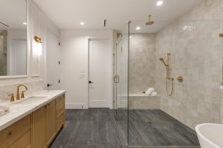 THE PALLISER CHATEAU by Quantus Homes. Blending elegant finishes with practical design. Located in Central Coquitlam, this 7 bed/ 7.5 bath home offers 5,608 sqft of luxury living & designer finishes throughout. This home feat. a bright open layout w/ over height ceilings, engineered hardwood floors, radiant in-floor heating + AC. The gourmet kitchen boasts premium appliances, custom millwork/stonework & wok kitchen. Designed w/ entertaining in mind the kitchen opens up to the expansive great room & covered patio w/ outdoor kitchen. Upstairs is your primary retreat w/ walk in closet + spa-inspired ensuite + 3 more spacious bedrooms w/ ensuites. Downstairs offers a gym, large rec room w/ wet bar & 2 bed legal suite. Detached dbl garage + main floor bdrm w/ ensuite complete this offering!