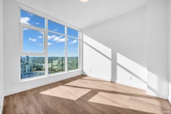 Luxury living with UNOBSTRUCTED VIEW at Smith & Farrow by Boffo in West Coquitlam. One block to BURQUITLAM STATION, minutes to SFU, restaurants, shopping, and parks. 27th floor 952 SF of interior space with 9’ ceilings, this 2 bed + flex home offers abundant natural light with SOUTH-FACING windows overlooking the Fraser River. Extra-large kitchen features full-size 30” integrated Fisher & Paykel / Bosch appliance package, brilliant storage solutions, and waterfall island with cabinetry drawers. All bedrooms include built-in wardrobe system and European wide-plank flooring. Entertain in the comfort of AC indoors or outside on the 132sqft covered balcony with gas outlet. Extensive amenities include concierge, outdoor pool, hot tub, rooftop indoor/outdoor lounge, gym, yoga studio and more!