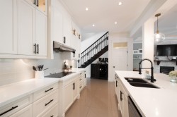 Executive 6-bed, 5-bath home with a 2-bed legal suite, offering stunning Mt. Baker views from the south-facing bedrooms and a private backyard backing onto a greenway with direct trail access. The spacious main level features an open-concept layout with a large island, generous storage, gas fireplace, and a family room leading to a peaceful covered outdoor sitting area. A separate wok kitchen adds convenience. Upstairs boasts four bedrooms, including two with ensuites; the primary offers an expansive greenway view, walk-in closet, soaker tub, and double shower. The lower level includes a well-laid-out suite ideal for income or extended family. Walking distance to schools, parks, and amenities, this modern home is perfectly designed for family living and an active outdoor lifestyle.