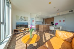 Welcome to M3 by Cressey, Coquitlam's tallest and most sought-after tower. This 2bed/2bath home also includes a spacious den with a large window, easily used as a third bedroom. The southwest-facing corner layout, 9' ceilings, floor-to-ceiling windows, air conditioning, and an efficient floorplan designed for modern living. The signature CresseyKitchen is equipped with Blomberg & Fulgor Milano appliances, double refrigerators, and a wine cooler. Enjoy sweeping, unobstructed views from every room. The primary suite features a spa-inspired ensuite with radiant heated flooring. Exclusive access to the Summit Club on the 47th & 48th floors, offering 9,000 SF of world-class amenities including gym, lounge and entertainment spaces. Just steps to Coquitlam Centre, SkyTrain, Lafarge Lake and more.