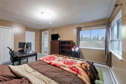 Executive, Corner unit townhome located in Hollyview Estates (only 13 units) 4 bedrooms, 2.5 baths, double side by side garage + single car pad. IMMACULATE condition, Reconfigured kitchen space to double open doors between both living and dining rooms. upgrades include new kitchen and bathrooms with new cabinetry and quartz counter tops, stainless steel appliances, wood flooring on main floor , covered balcony off 2nd master bedroom. Strata fees $165/month bare land strata (this means you share the common property only & take care of your own home & yard within your fence). Roof replaced in 2012. Convenient location close to amenities, parks, schools and easy access to transit and highways.
