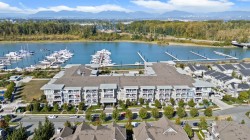Discover unparalleled luxury in Ladner's premier waterfront enclave,Pilot House.This 2 bed/2 bath 1193 sq ft floorplan is an entertainer's dream,showcasing a stunning kitchen,soaring ceilings & an abundance of southern light that fills the space daily.The chef-inspired open kitchen anchors the home,featuring pro-grade SS appl,premium cab& oversized island that flows seamlessly into expansive living & dining spaces finished w/ luxury hw flooring. Bdrms are thoughtfully placed at opp. ends,each a generous retreat w/WIC. Primary bath w/ soaker tub, double sink+ shower. Modern comforts incl A/C, in-suite ldry, storage & sec prkg. Resort-style amens elevate daily life: outdoor pool, hot tub, elegant lounge, guest ste & sport crt. Steps to scenic trails, Captain's Cove Marina, dining & schools.