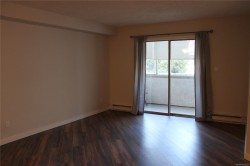 Spacious Corner Condo In Town. This 1005 sq ft 2 bedroom, 1 bathroom condo has a nice open floor plan with a big Y shaped living/dining room leading out to the enclosed sunroom. There are 2 big bedrooms and the 4 piece bathroom has been updated. The white kitchen has lots of cabinets and a subway tile backsplash and there is laundry in the unit. Other features include new hot water tank & there is an elevator in the building. A parking stall also comes with this unit. Great location with walking distance to the shops, schools and recreation in town. No age or rental restrictions and 1 cat allowed. A well managed & maintained building.