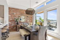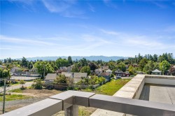 Sub Penthouse in Esquimalt Town Square! A charming and vibrant community offering the perfect blend of modern living and walkable amenities. This 1 bedroom plus den, luxury condo, offers oversized picture windows with mountain, city and ocean views from the 217 sq ft balcony! 9'7" ceilings, reclaimed brick feature wall, and modern electric fireplace. Oak flooring and Oak shelving in living room, closets and den/office. Bosch oven, gas range (gas included in strata fee), Fisher Paykel fridge, and custom cabinetry. Spacious bath with soaker tub and geothermal heated flooring. Gas BBQ hookup. Secure underground parking spot with EV charger. Live right beside the public library, ERC coffee, Saxe Point Pub, Esquimalt Rec Center with lap lanes, sauna, hot tub & steam room, 2 grocery stores within 5 minutes & Saxe Point just a walk away. Exceptionally maintained building! Low strata fees. Call now to book your viewing!