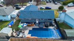 Welcome to this beautifully updated home featuring 3 bedrooms plus a den that can easily serve as a fourth bedroom, along with 3 bathrooms. Numerous upgrades add to its appeal, including a new roof (2022) and a incredible heated saltwater pool complete with a new variable pump and solar blanket —perfect for relaxing or entertaining. The bright and airy living room is highlighted by a stunning new floor-to-ceiling window (2025), while new kitchen window and updated appliances bring a fresh feel to the heart of the home. The main bathroom and walk-in closet were remodelled in 2025, offering a modern and functional touch. Major systems have been taken care of, with a new hot water tank, furnace, and AC unit all installed in 2020. Additional features include a new front and back door (2025) and newly installed carport converted to a garage (2020). This move-in-ready home blends comfort, style, and thoughtful upgrades throughout. All measurements are approximate and should be verified by the Buyer if deemed important. Call to view today!