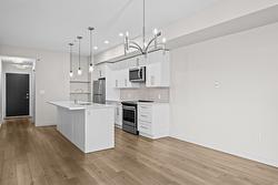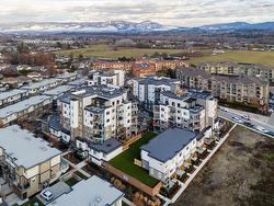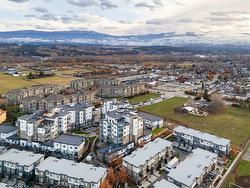 Introducing an extraordinary opportunity at Green Square—an exceptional condo that sets the bar for modern Lower Mission living. Perfectly situated on Mission Springs Dr, this home offers unmatched walkable convenience to some of Kelowna's best beaches, boutique shopping, restaurants, recreation like the H2O Centre and bike trails. This spacious floor plan offers 892 sqft. of thoughtfully designed space with 2 bedrooms, 2 bathrooms, 1 secure underground parking stall and a external storage locker! The open-concept layout welcomes you with abundant natural light from the large bright windows. High-end finishes include quartz countertops, European-inspired flat panel cabinetry, chrome fixtures, and stainless steel appliances, creating a sleek contemporary feel. Step onto the covered, SW-facing corner patio with a gas BBQ hookup—ideal for relaxing or entertaining. Green Square delivers an impressive array of lifestyle amenities for the development: enjoy the rooftop patio, tend to the community garden, or stay active in the fitness facility. Added conveniences include a dog/bike wash station and secure bike storage. A rare offering in one of Kelowna’s most desirable neighbourhoods. This home is vacant and ready for a quick possession!