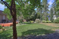 The spacious primary suite includes a 3-piece ensuite and direct access to the backyard. Additional highlights include a newly installed heat pump for year-round comfort, a garage with ample storage, and space for RV parking.