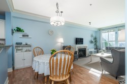 Welcome to The Sonnet! A well-maintained gated building with very low strata fees. This ground-floor, south-facing 1-bedroom + flex space unit offers abundant natural light with tall windows, 9 ft ceilings, and crown moulding. The bright, open-concept kitchen features upgraded appliances and a new sink. The bathroom was fully renovated in 2021 with a new vanity, soaker tub and in-floor heating. The spacious living area opens to a private patio, perfect for entertaining. Includes built-in A/C, only a couple of years old. Central, bike-friendly location within walking distance of the future SkyTrain station. Large storage locker on the same floor for convenient access. Amenities include fitness and recreation rooms, secure bike storage, and ample visitor parking. Book your showing today!