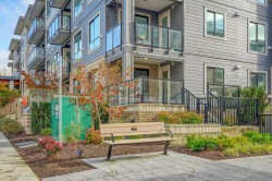 Welcome to the DOG LOVERS DREAM! 2 dogs, no size restrictions! Ground floor, outside corner 2 + 2 apartment with large patio and direct street access! TWO side by side underground parking spaces, bike storage, lots of visitor parking and a non-smoking building! Huge bright kitchen with a very large pantry, tons of counter space plus island. Large entry hall with a big closet for coats and shoes. Primary bedroom has a walk-in closet and ensuite with double sinks & large shower. 2nd bedroom is located across the apartment and has a large closet, big window plus the second full bathroom (tub/shower combo) is across the hall. Energy efficient Heat pump with 3 heads keeps this home cool in summer and cozy in winter. Laminate flooring throughout main areas, bathrooms have tiled floors.