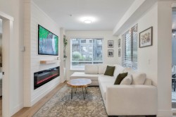 Bright, open, southwest-facing 2-bed, 2-bath corner home with a highly sought-after ground-level walkout patio, built by award-winning Zenterra. Excellent floor plan with 9 ft ceilings and vinyl plank flooring throughout. The kitchen features shaker-style cabinetry with a pantry, Samsung stainless-steel appliances with a gas range, a large island, quartz countertops, and an undermount sink. Two spacious bedrooms plus a bonus linen/storage area. Gas hookup on the patio. Unbeatable location: walk to coffee shops, restaurants, fitness facilities, and the Langley Events Centre. Future rapid transit will connect this area directly to SkyTrain. One underground parking, with more available to rent/purchase, plus plenty of street parking right out front.