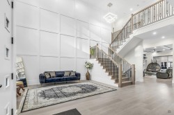 Welcome to prestigious Havenwood! This stunning West Coast-inspired 11 bed, 9 bath home sits on a spacious 7,439 sq/ft corner lot, offering modern luxury at every turn. The open-concept main floor features soaring double-height ceilings, a bright living and dining area, a MASTER SUITE on the main, an additional bedroom, and a family room with a built-in entertainment wall. The gourmet kitchen includes a large island, quartz countertops, high-end KitchenAid appliances, and a SPICE kitchen. Upstairs has 4 spacious bedrooms, each with its own ensuite, including a luxurious primary suite with a fireplace, walk-in closet, and entertainment wall. Two mortgage-helper suites (2 Bed + 3 Bed) generate excellent cash flow. Don’t miss this elegant opportunity