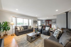 Stunning 3-bedroom, 2-full bathroom open concept rancher in Murray’s Corner! This spacious home boasts a welcoming wrap-around deck, front office/den w/ separate entry, bright & open living area w/ bay window, gas fireplace & large adjacent dining area. Kitchen w/ quartz counters, stainless appliances, generous counter space & cabinetry, pantry, & eating area. Sliding door access to spacious covered deck, stamped concrete patio, gazebo, sheds, & beautifully landscaped & fenced yard. Three bedrooms including primary bedroom w/ 4 pc ensuite & walk-in closet. 4 pc main bathroom, laundry room, & storage/utility room w/ crawlspace access for add'l storage. New carpets & hot-water tank. Central A/C! Double car garage & small RV parking. Short walk to parks, golf, cafés, schools, & shopping.