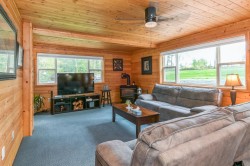 Calling all car enthusiasts! Are you looking for a unique property that’s private, peaceful, & has room for all your toys? This one-of-a-kind home sits on 4.26 acres in desirable Glen Valley. Featuring a huge 39' x 23' garage, plus three additional outbuildings, all with power & plenty of open parking. The home offers interlocking pine wood panel walls, an updated kitchen with SS appliances & a gas stove, newer windows that capture beautiful natural light & views of the property, carpet, an alarm system, a newer washer/dryer, a newer hot water tank, & a generator. The primary bedroom is impressive, boasting vaulted ceilings, over 500 sq. ft. of space, a spacious walk-in closet, & an ensuite with a Jacuzzi tub. Enjoy summer evenings relaxing on your private balcony. Downstairs includes a ga