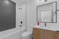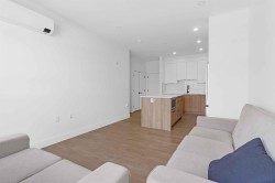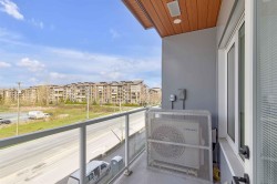 The Ellery. Bright 2-bedroom, 2-bathroom, 3rd-floor unit in Langley's desirable Willoughby neighborhood. Vaulted ceilings and a custom-designed floor plan create a efficient and spacious environment. The kitchen boasts quartz countertops to entertain friends & family, designer tiles & backsplash, a gas range & wide plank flooring. Underground secured parking, storage and bike locker. Enjoy incredible views with communal gardens, picnic benches, lounge chairs, a children's play area and a rooftop patio. It is situated in a central location, offering easy access to all amenities & walking distance to shopping, restaurants, cafes, and more. Heat pump for year-round comfort. Pets and rentals are allowed. Parking #6 P2 and two Lockers #6 & #15.