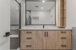 This captivating craftsman-style custom home is a true showpiece. Striking curb appeal, meticulously crafted exterior and 6,300-sf+ of thoughtfully curated interior living. Inside, experience designer features such as a hidden powder room, 3-way fireplace and glass-enclosed den with vaulted ceilings. The transitional interior is defined by soaring 20-ft ceilings, radiant heating, high-end millwork and finishings throughout. The modern kitchen is equipped with built-in F+P appliances incl. beverage maker, gas cooking, designer hardware, walk-in pantry and a secondary prep kitchen. The main floor layout includes a second living area lounge, a mudroom and a fully ensuited bedroom suite. Enjoy a quiet treed yard and expansive covered deck in beautiful Brookswood.