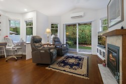 Churchill Park in Walnut Grove North Langley one will find a Dream townhome boasting modern updates throughout: gourmet kitchen with top-tier appliances, upgraded flooring, laundry with new appliances and laundry tub, storage, closets, primary bath, and powder room have been tastefully remodelled. This easy access home has the primary bedroom on the main floor all the main living areas while upstairs you will find two more bedrooms and a full bathroom making a great place for friends and family to stay. Utility Features A/C, hot water on demand, and 2 stylish gas fireplaces for those colder fall/winter evenings. Quiet location in the adult gated community with a fenced yard for privacy and 2-car garage.