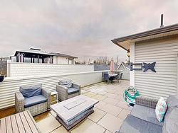 EVERLY GREEN by Qualico - Located in a quiet cul-de-sac in Willoughby Heights is central location to all amenities, shopping, parks and school. From the expansive 180 degree views from the rooftop terrace to the customized interior fireplace and bar area, everything you need to entertain this summer is right here. Extras include freshly painted, updated light fixtures and crown moulding on main and master bedroom, new laminate in den & upstairs, newly carpeted stairs, stone fireplace and custom master closet with a little workshop in the garage. Bonus - it's a corner home so no neighbours on one side & visitor parking is right beside your home.