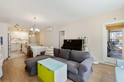 Live in style at Yorkson Park! This beautifully designed 5th-floor corner end unit 3 bed / 2 bath + solarium condo offers 1,041 sq. ft. of sophisticated living space plus a 236 sq. ft. glass-enclosed solarium, perfect for year-round enjoyment with a gas hookup for BBQ. The high-end kitchen features stainless steel appliances, a 5-burner gas cooktop, double oven, white shaker cabinets, and quartz countertops. Thoughtful upgrades include 9’ ceilings, A/C & heating and heated bathroom floors. Comes with 2 underground parking stalls and a private roll-up storage locker with an EV outlet. Ideally located just steps from Carvolth Park & Ride, Hwy 1, and top-tier shopping. Low strata fees include gas, fitness room, a lounge, and a playroom.