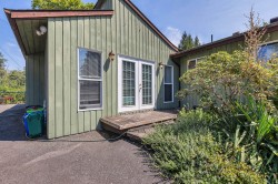 Beautifully renovated and full of West Coast charm, this 3-bed rancher is tucked away on a quiet cul-de-sac. The gorgeous kitchen has loads of cabinets and counter space with a massive island. Step down into the formal living room with vaulted wood ceilings and stone fireplace. The primary bedroom with 2 pc ensuite (closet is plumbed for a shower) and french door access to the back yard is a dreamy oasis. The backyard has a massive deck overlooking a private, fenced yard that backs directly onto Newlands Golf Course, with a gate for easy access. Enjoy the two storage sheds & RV parking. There's a potential future use to Low Rise Residential, Buyer to confirm with the City. Live long term or hold for investment!