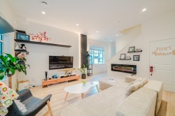 This well-designed corner unit townhome at NEWBURY offers two levels of living space with a layout that truly feels like a single-family home. The main floor features 10-foot ceilings, while the second level offers 9-foot ceilings throughout, creating a bright and open atmosphere. All bedrooms are generously sized with highly functional layouts. Enjoy excellent privacy, with the front of the home facing a landscaped garden and community mailbox area, and the rear backing onto a large detached single-family home set well away. A walk-out main floor patio extends the living space outdoors, while the spacious upper-level loft provides flexibility for a home office or additional living area. Ample storage throughout and a side-by-side double garage complete this comfortable and modern home.