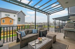 Exceptionally built END-UNIT ROWHOME by North Arc Properties with NO STRATA FEES. This spacious & meticulously maintained home shows like new and offers extensive upgrades throughout. Enjoy A/C, a chef-inspired kitchen w/ wine fridge and Fisher & Paykel appliances complemented by high-end finishes throughout. The professionally finished basement is ideal for guests or entertaining, showcasing a custom bar w/sink, wine storage, cabinetry & bar fridge, plus a developer-installed soundproofed bedroom. Well-sized bedrooms with potential to add 5th bedroom upstairs. Enjoy year-round outdoor living on the covered deck with gas BBQ hookup and custom awning. Rare 4-vehicle parking with double garage (epoxy floors) plus parking pad. A standout home offering privacy, space and luxury without strata.
