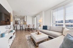 Welcome to this stunning 2 bed, 2 bath upper-level corner unit in Latimer Heights by Vesta Properties! Built in 2021, this bright and airy home features a chef’s dream kitchen with an upgraded appliance package, spacious layout, and large windows that fill the space with natural light. Enjoy two private patios with breathtaking city and mountain views—perfect for relaxing or entertaining. Bonus: two secured parking stalls, a rare find in Willoughby Heights. Located just minutes to top-rated schools, shopping, parks, Carvolth Exchange, and Hwy 1, this home truly has it all. Open House November 23 from 1-3pm!