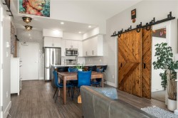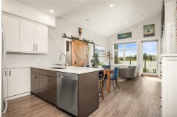 Rarely does an executive condo this thoughtfully upgraded come to market. This stylish Top Floor Unit contains 2 bedrooms plus spacious bonus room offers exceptional flexibility for a home office, studio, gym or theatre room. Upgrades throughout include: Custom B.E. glass tiling, granite countertops, black kitchen sink, added cabinetry and storage, custom lighting in every fixture. Unique barn doors with handcrafted hardware, reinforced walls, and custom built closets showcase attention to detail. Large south facing balcony is the longest in the building, perfect for year round gathering. Features include blackout blinds, upgraded bath with custom woodwork & shower doors, built in storage, "Cloffice" & more. Underground parking, visitor parking, bike storage and easy access to VIU, NAC, NDSS, schools, shops & services right in your complex. Truly move in ready one of a kind home. Dogs & Cats welcome, 2 up to 40LBS Each!!! See Special Features List for more!