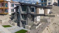Welcome to sophisticated modern living with panoramic Okanagan views at The Ridge Penticton—a thoughtfully designed contemporary duplex offering over 2,000 sq. ft. of impeccably planned space across three luxurious levels, all seamlessly connected by a private elevator for ultimate convenience. Perched to capture breathtaking views of Skaha Lake and the Okanagan Valley, this home is a rare blend of modern elegance and everyday functionality. The top floor is a true showpiece—ideal for morning coffee or hosting stylish dinners against a stunning scenic backdrop. A versatile bedroom or den on this level provides flexibility to suit your lifestyle, whether as a guest suite, home office, or creative studio. The middle level features a serene primary retreat complete with a spa-inspired 5-piece ensuite with in-floor heating and a generous walk-in closet. An additional spacious bedroom with its own private 4-piece ensuite ensures comfort and privacy for family or guests. A well-appointed laundry room adds everyday practicality. On the ground level, enjoy your own private theatre room and powder room. Groceries are easy to bring in via level laneway access, and the 2-car tandem garage adds convenience. High-end finishes throughout include quartz countertops, luxury vinyl plank flooring, premium stainless steel appliances, and a curated modern lighting package. This is low-maintenance, high-style living at its finest. Embrace the Okanagan lifestyle in a home that truly has it all.