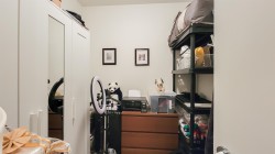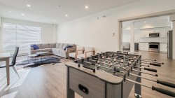 Welcome to LUMIERE, a NEWER DEVELOPMENT in the heart of Downtown Port Coquitlam!! Well laid out open concept 1 bedroom & den & 1 bathroom GROUND LEVEL unit!! Kitchen has quartz countertops, breakfast bar, stainless steel appliances & white shaker cabinetry w/under mounted lighting. Beautiful 12mm laminate flooring throughout with TJI silent floor system. 9' ceilings throughout for an open & airy feeling. Roughed In Central Vacuum, Smart Thermostat. Large 96sf covered PATIO for your entertaining. Close to transit, schools & Westcoast Express with Gates Park just a block away!! Walk to the new PoCo Recreation Centre!! Pet & rental friendly building. 2 Recreation Rooms for entertaining!! Wheelchair friendly. 1 parking stall included w/several bike rooms. 4 EV Charging Stations in building!!