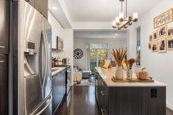 GOLF COURSE VIEWS! Stylish 2 bed townhome at Dominion North on the quiet side, backing directly onto Carnoustie Golf Course - A RARE OPPORTUNITY! Bright open main level with high ceilings, wide plank flooring and a sunken living room that flows to a private deck and fenced yard with fairway views. Sleek kitchen with white quartz counters, large island & great storage, plus a custom built-in hutch in the dining area. Upstairs, two generous sized bedrms including a primary suite with an amazing vantage of golf course, a custom closet and spa-like ensuite. Double tandem garage for parking & storage. Dominion North offers a gym, clubhouse, playground & visitor parking in a family friendly community close to Fremont Village, schools, parks & all amenities. OPEN SAT DEC 20, 12-1P