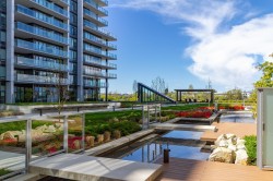 Luxurious and rarely available ground floor unit with 2 bedrooms + den and 2 full bathrooms, soaring 11 ft. ceilings. Enjoy the spaciousness and abundance of natural light, accentuated by floor-to-ceiling windows. The open kitchen features a gas cooktop, modern cabinets and high-end Miele appliances. Step outside to your huge 500 sq.ft. private patio facing the manicured courtyard, perfect for outdoor entertaining. Indulge in resort-style amenities including a swimming pool, sauna, luxury hotel-level gym and so on! Conveniently located steps away from Richmond Oval, T&T supermarket, and an array of shops and restaurants, this modern oasis offers a lifestyle of luxury and convenience.