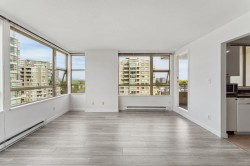 Welcome to this spacious 2 bed/2 full bath unit at the Chancellor! This bright corner unit home offers stunning multi directional mountain views through oversized living and bedroom windows. Upgraded flooring throughout, large balcony, new kitchen sink, faucet and cabinet knobs. Location is ideal - just steps to the Richmond Public Market, Richmond Centre Mall and the Canada Line. Priced to sell and easy to show!!