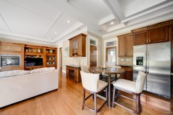 Nestled in a quiet cul-de-sac, this stunning home sits on a massive 11,717sqft lot with a beautifully landscaped, south-facing backyard. Quality built with an exceptional layout, it boasts 10-ft ceilings on the main floor and 14-ft vaulted ceilings in the living room, complemented by classic 7-inch wide plank flooring. The gourmet kitchen features granite countertops, high-end stainless steel appliances, and a built-in pantry. Offering two master bedrooms—one conveniently located on the main floor—all upstairs bedrooms come complete with walk-in closets and ensuites. Enjoy premium amenities including a games room, media room, gym, home sound system, and full house A/C. Located in a highly desirable South Surrey neighborhood, close to Southridge private school, shopping, recreation