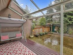 Prime Location !!! very well maintained with many updates ,In the heart of Newton 3 bedroom end unit - very private yard. Spacious/Open concept for living/dining room leading to a rear wood deck with glass canopy and fenced rear yard with exceptional landscaping. Kitchen boasts stainless appliances with gas stove- convection oven combo. OTR micro/hood fan and counter lighting. A must see .modern trim package, extensive lighting package throughout. Upper floor features a exceptionally large master bedroom with walk-in-closet and deluxe en suite with 5' walk-in shower. Additional storage room +4' crawl space/ ideal for storage. Close to both level of schools, shopping Malls and Recreation center !! Must see and great value at this price.