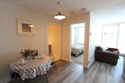 Welcome to MC2, north tower, by Intracorp. A one-bedroom and den plus flex space. Enjoy views of the city, Fraser River, and event Mt. Baker from your private balcony. A contemporary kitchen with integrated appliances, and a large bedroom with built-in side closets. Step outside and you'll find yourself moments from the Canada Line, shops, cafes, and restaurants - with the city at your fingertips. This unit includes ONE SECURED PARKING STALL, adding convenience and peace of mind in a prime urban setting. There's also one storage locker for all your additional items. New flooring, fresh coat of paint including the ceiling. Whether you're a first-time buyer or investor, this is an opportunity you won't want to miss. Move-in ready condition!