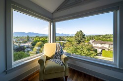 Exciting Opportunity... this elegant home has PANORAMIC mountain & city VIEWS. This charming & light-filled home has expansive windows highlighting the views & soaring high ceilings. 2 generous sized rooms on the upper floor, 1 spacious bedroom (flex room) on the lower level. Large soaker tub in the master bedroom ensuite with VIEWS!! Air conditioning, European designed gourmet kitchen, outdoor patio BBQ area & complete with an elevator to the garage. Close to shopping, parks, transit & a short drive to UBC and downtown. Excellent school catchment: Trafalgar Elementary and Prince of Wales Secondary School.