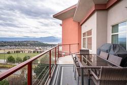 Fully Renovated Luxury unit at Coper Sky! Experience resort-style living in this fully and luxuriously renovated upper-floor residence at the renowned Coper Sky. Showcasing soaring vaulted ceilings and an expansive, massive balcony, this exceptional home offers breathtaking, unobstructed views of Mission Hill, the surrounding hillside town, and Okanagan Lake. The residence features a stunning new white glossy kitchen with high-top cabinetry, elegant granite countertops, and a modern, open design ideal for both entertaining and everyday living. Engineered laminate flooring flows seamlessly throughout the home, enhancing its contemporary and cohesive aesthetic. Both bathrooms have been completely updated with sleek, glossy tile finishes, and a new washer and dryer adds everyday convenience. The hallway leads to two spacious bedrooms, including a luxurious primary suite with a private ensuite and walk-in closet. Modern, stylish furniture could be included in the purchase price, offering a true turnkey opportunity. The property is perfectly suited for Airbnb or short-term rental use, with strong potential for high revenue. Pets allowed with some restrictions. Bathed in natural light, residents enjoy access to an impressive living in one of the area’s most desirable resort-style communities, the amenity building offers, swimming pool, hot tubs, tennis court, gym, pool table, conference room, and a barbecue area, steam room, and resort-style living.