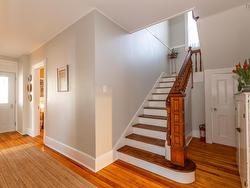 Step into a piece of history with this striking Queen Anne Revival graciously positioned on a large lot fronting on lovely Saint George Street. Grand, sunlit rooms with soaring ceilings, gleaming hardwood floors, and timeless architectural details create an atmosphere of sophistication. Thoughtfully modernized for contemporary comfort while retaining its original charm and history. Energy-efficient upgrades, including blown-in exterior wall insulation, spray-foamed foundation, new Osburn fireplace insert and ductless heat-pumps create a cozy environment year-round. Formerly operated as a B&B this home offers exceptional versatility with 4 bedrooms, 5 bathrooms (two ensuites) and an inviting front door ramp for accessibility. The third floor has boundless potential to be finished to suit your needs, perhaps an in-law suite, creative studio or luxurious guest retreat. Additional features include all new appliances, municipal water/sewer, fibre-op internet, and a double garage for added convenience. Embrace a walkable lifestyle in historic Annapolis Royal - just steps away discover the vibrant charm of one of Canada's oldest towns with antique shops, art galleries, cafes, acclaimed restaurants, the Historic Gardens, the King's Theatre, and the Harvest Moon Trail. Whether you crave culture, nature, or community, it's all within reach from this captivating home.